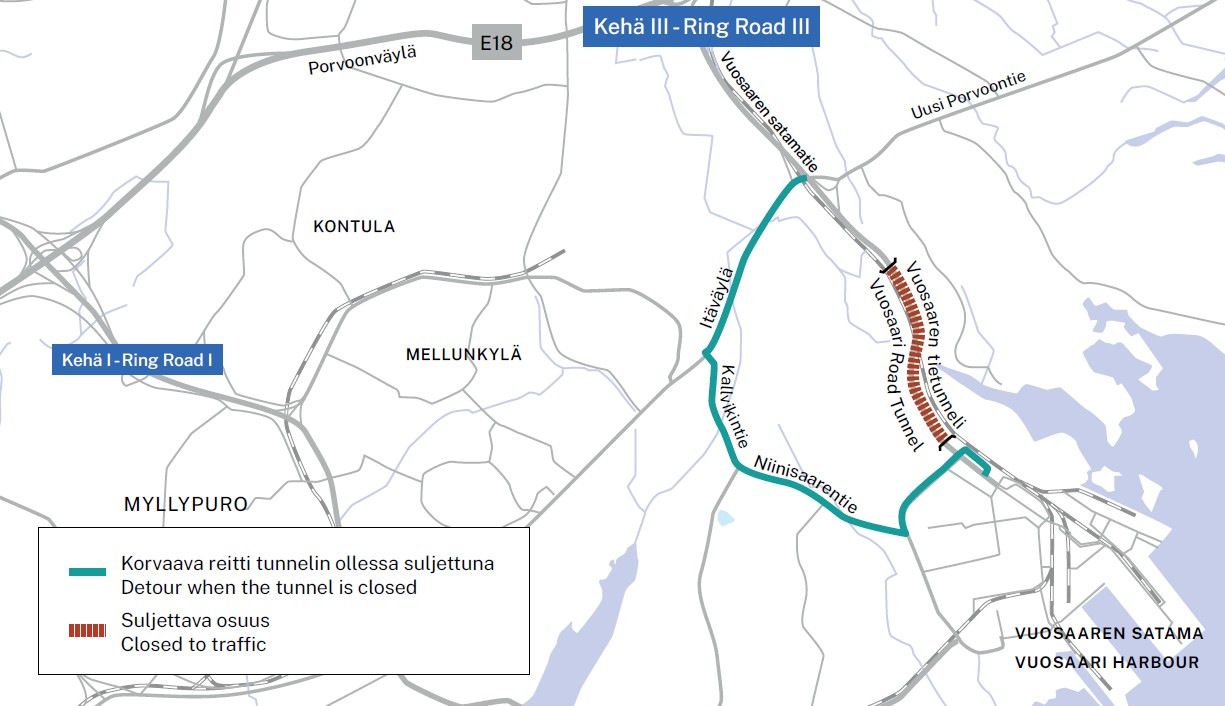 6. jaanuaril 2026 algab Vuosaari maanteetunnelis ulatuslik renoveerimine, mille tõttu tunnel suletakse umbes aastaks. Selle aja jooksul suunatakse liiklus ümbersõidule, mis kulgeb Kehä III-lt Itäväylä, Kallvikintie ja Niinisaarentie kaudu Vuosaare sadamasse.