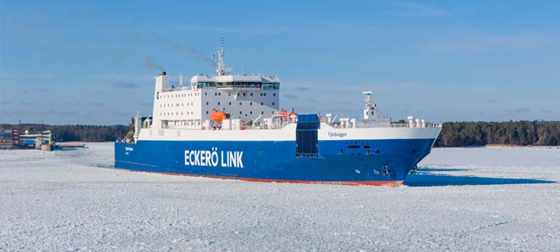 Eckerö Link tegeleb kaubaveoga laevaga Fjärdvägen Ahvenamaa Långnäsi ja Mandri-Soome Naantali vahel.